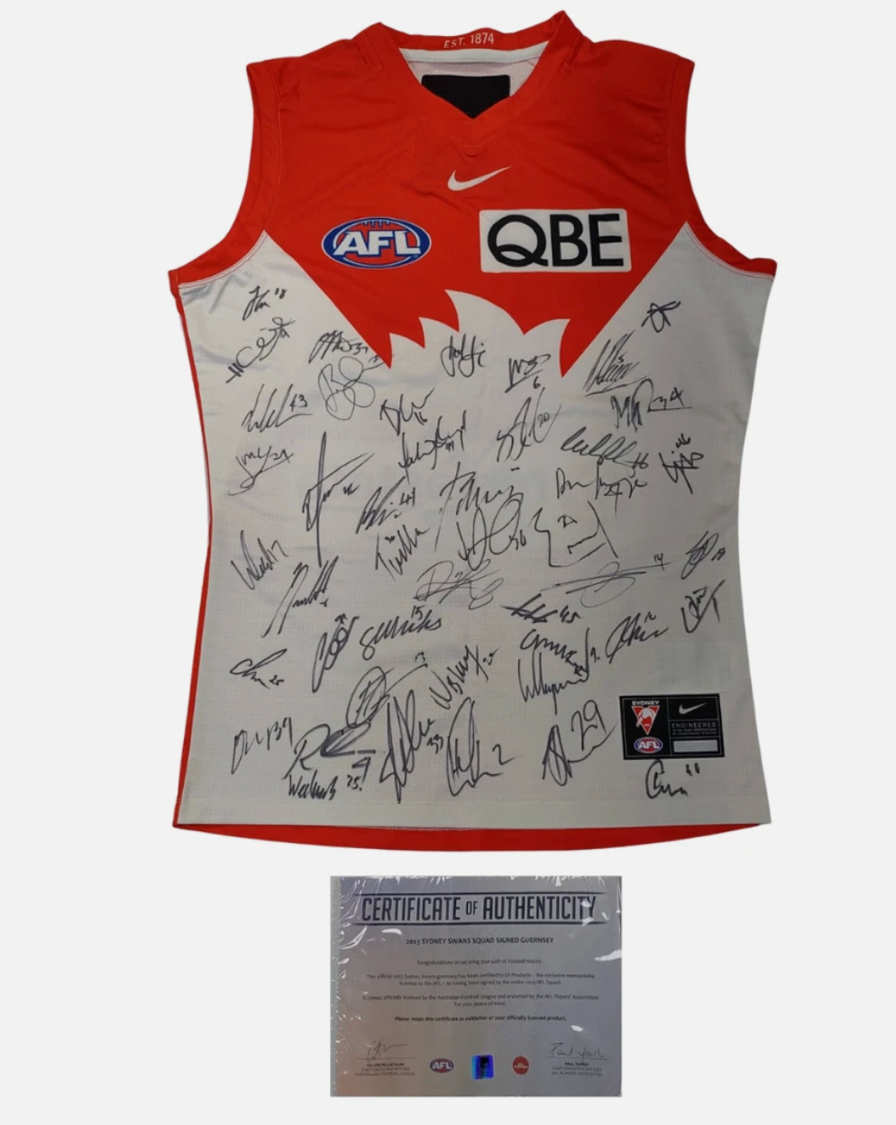 - A 2025 Sydney Swans team-signed jersey